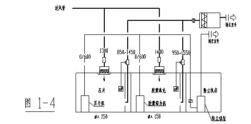4.4 對(duì)于有局部除塵排風(fēng)的房間,如壓片間、膠囊填充間,壓片機(jī)、膠囊填充機(jī)為封閉型。若在工藝設(shè)備不運(yùn)行時(shí),房間是否可以回風(fēng),根據(jù)生產(chǎn)品種和工藝設(shè)備運(yùn)行情況,以不會(huì)引起產(chǎn)品交叉污染為準(zhǔn)?梢栽诜块g送風(fēng)支管上裝定風(fēng)量閥,在除塵排風(fēng)支管上裝電動(dòng)密閉閥,電動(dòng)密閉閥與除塵機(jī)連鎖,在室內(nèi)設(shè)啟停按鈕。不需除塵時(shí),關(guān)閉除塵機(jī)和電動(dòng)密閉閥。在房間排風(fēng)支管上裝變風(fēng)量閥,控制房間壓差恒定。如圖1-4。
